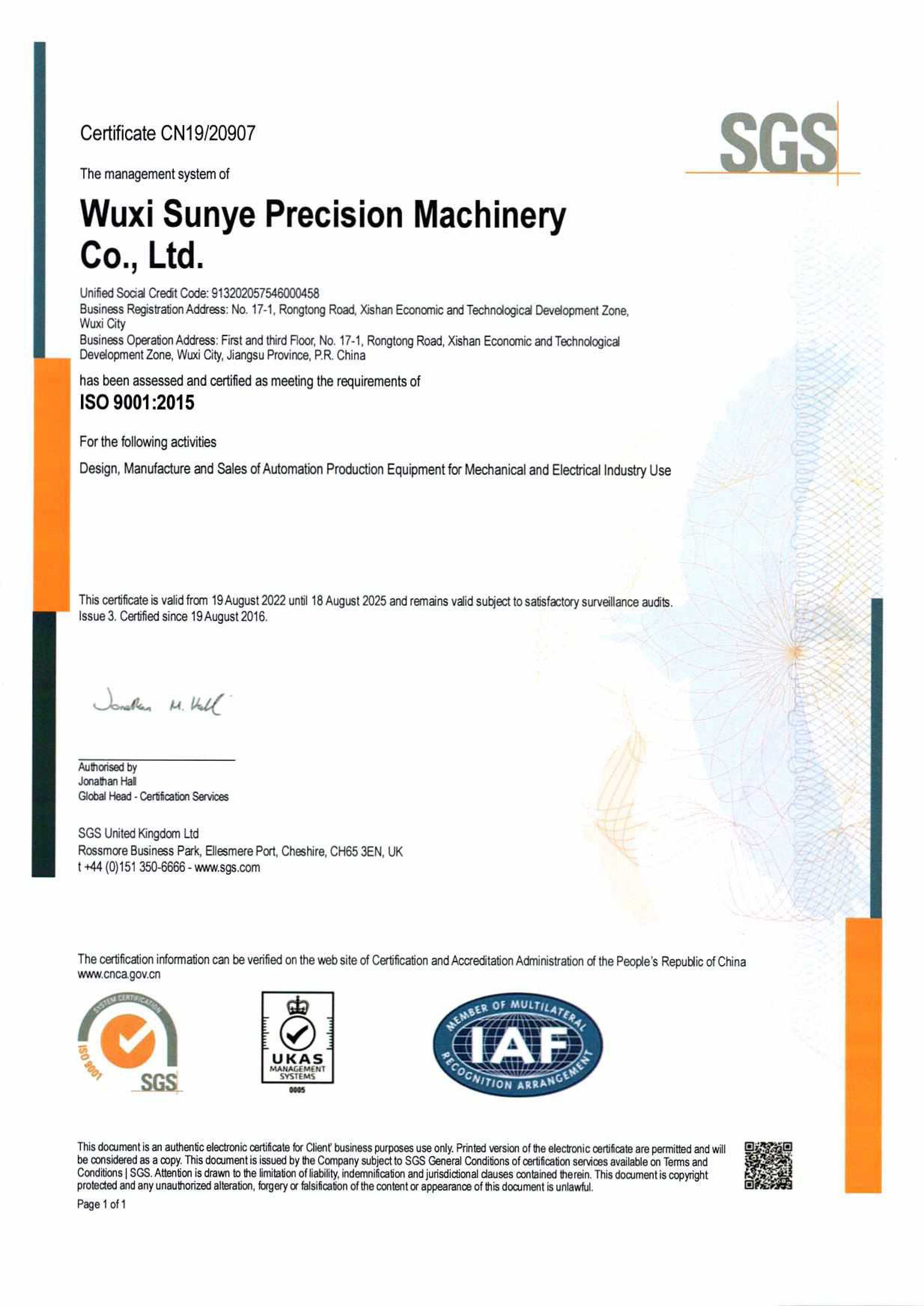 公司通過了ISO 9001:2015認證; 自動生產線出口