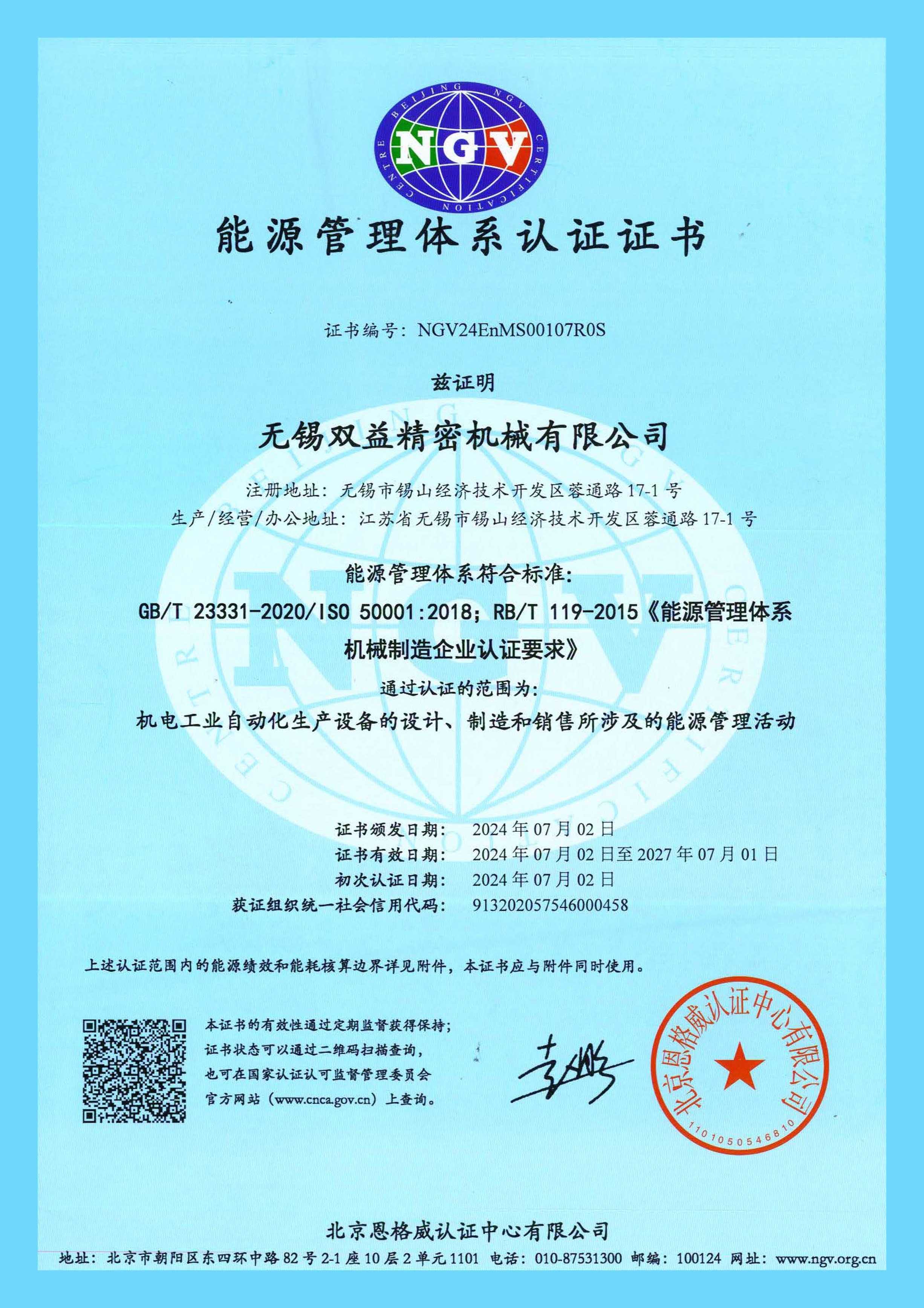 Sunye Precision Machinery attaches great importance to quality management, has passed SGS quality system certification ISO9001: 2015, TUV environmental system ISO14001: 2015, occupational health and safety management system ISO14001: 2015, energy management system IS050001: 2018, And intellectual property management system to provide customers with safe and high-quality products. At the same time, the company has been selected as a private science and technology enterprise in Jiangsu Province for many times, and won the title of "High-tech Enterprise" awarded by the People's Government of Jiangsu Province. In addition, Sunye Precision Machinery won the second prize of Science and Technology Progress of Zhejiang Province twice, won the title of Jiangsu Province specialized and special new enterprise, and was identified as the municipal enterprise technology center and the municipal engineering technology research center, and was identified as the municipal confidential pilot unit.